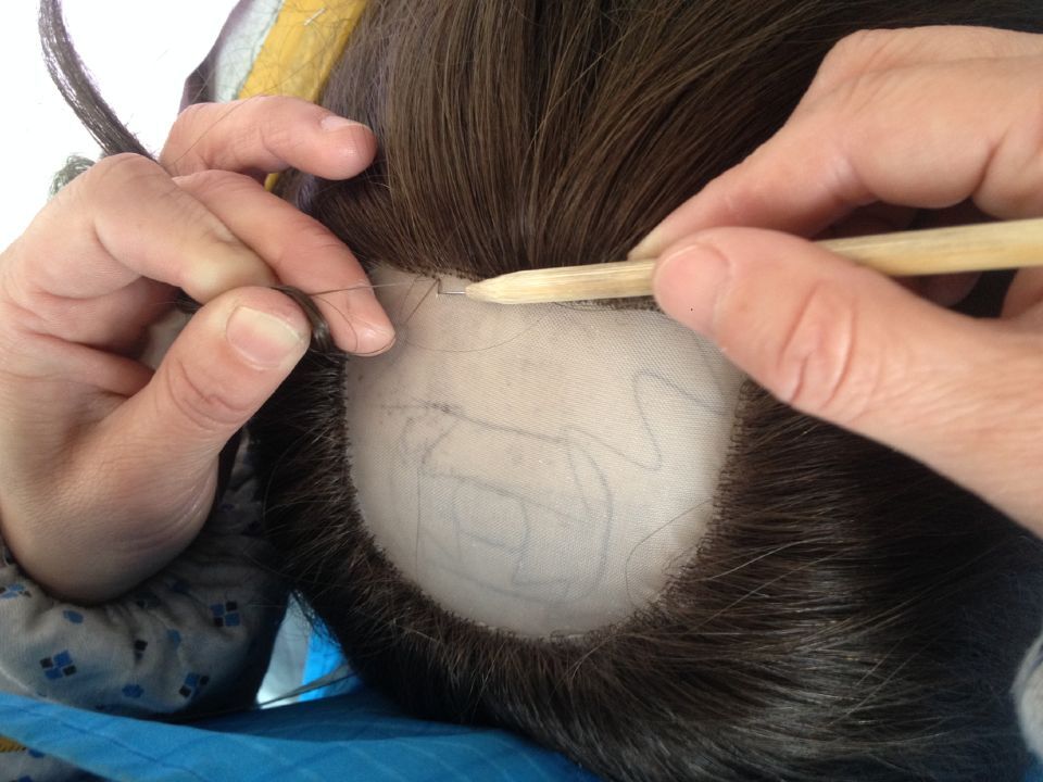 Single-Knot Ventilating: Demonstrate the strand-by-strand implantation, especially at key areas like the hairline and part lines, to mimic natural hair growth patterns.