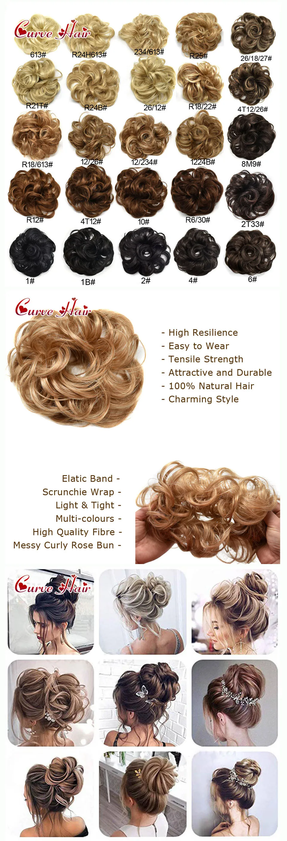 Curly Messy Rose Bun Hair Piece Scrunchie Donut Updo Bun Hair Extension For Women Girls Chignon Synthetic Pony Tail Hairpieces