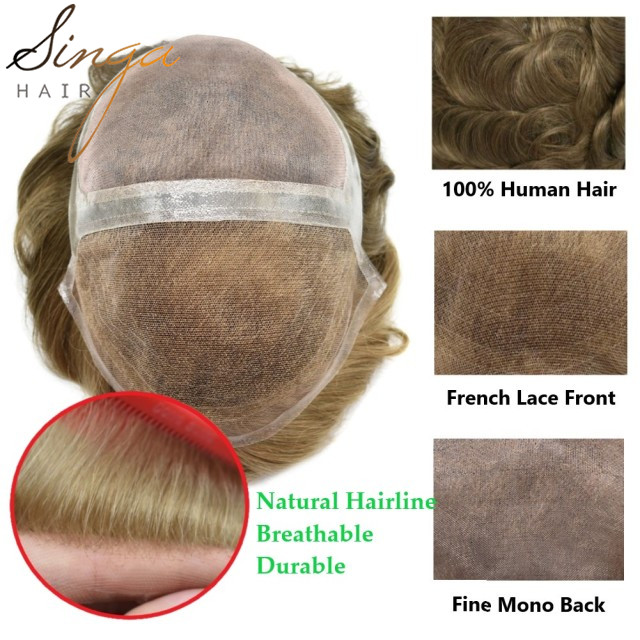 Crafted with a French lace front and clear poly skin base, this toupee combines innovative design with high-quality materials, making it ideal for men seeking a natural-looking, durable hairpiece that stays firmly in place.