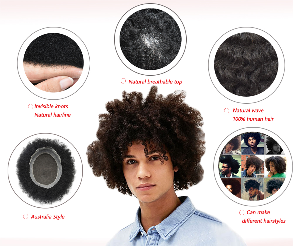 Singahair Afro Toupee For Black Men Lace Poly Skin Around Human Hair 8MM Weave System Unit Australia Afro