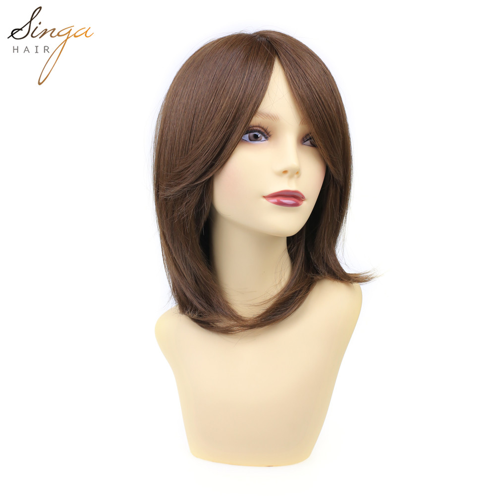 Synthetic Women Wigs Full Cap Kanekalon Heat Friendly Short Natural Wavy Lady Hair Replacement Premium Quality Gold Hair System