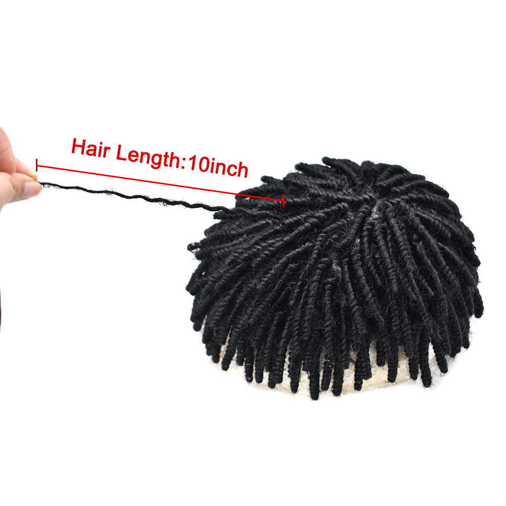 Braided Afro human hair units for black men,120% Medium light to medium density, full and thick, soft and bouncy. 10 inches human hair, healthy and glossy. No Smell, Lightweight, Not Rough, Not easy to separate. Holding long time with good care. The afro braids toupee for black men uses all poly skin base that is light,soft and durable.No harm to the skin.It fits tightly onto the scalp. 8"width (side to side) x 10" length (front to back). Can be cut to your size.
