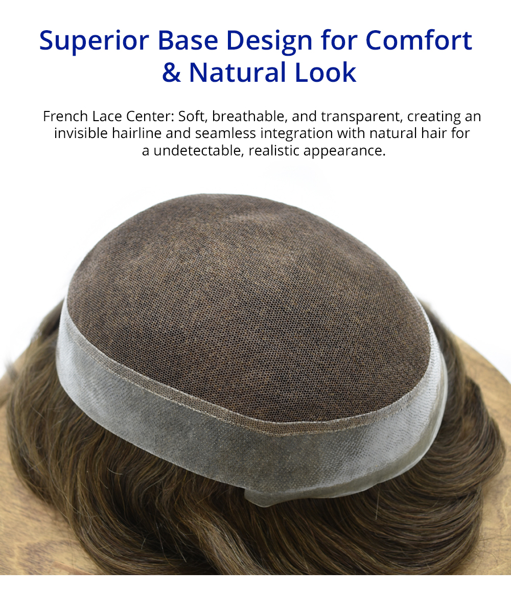 【Goldman Hair】Toupee For Men's Hair System French Lace Center & PU Edge for Strong Hold Hair Piece For Men Toupee Gym/Swimming/Sweat-Resistant