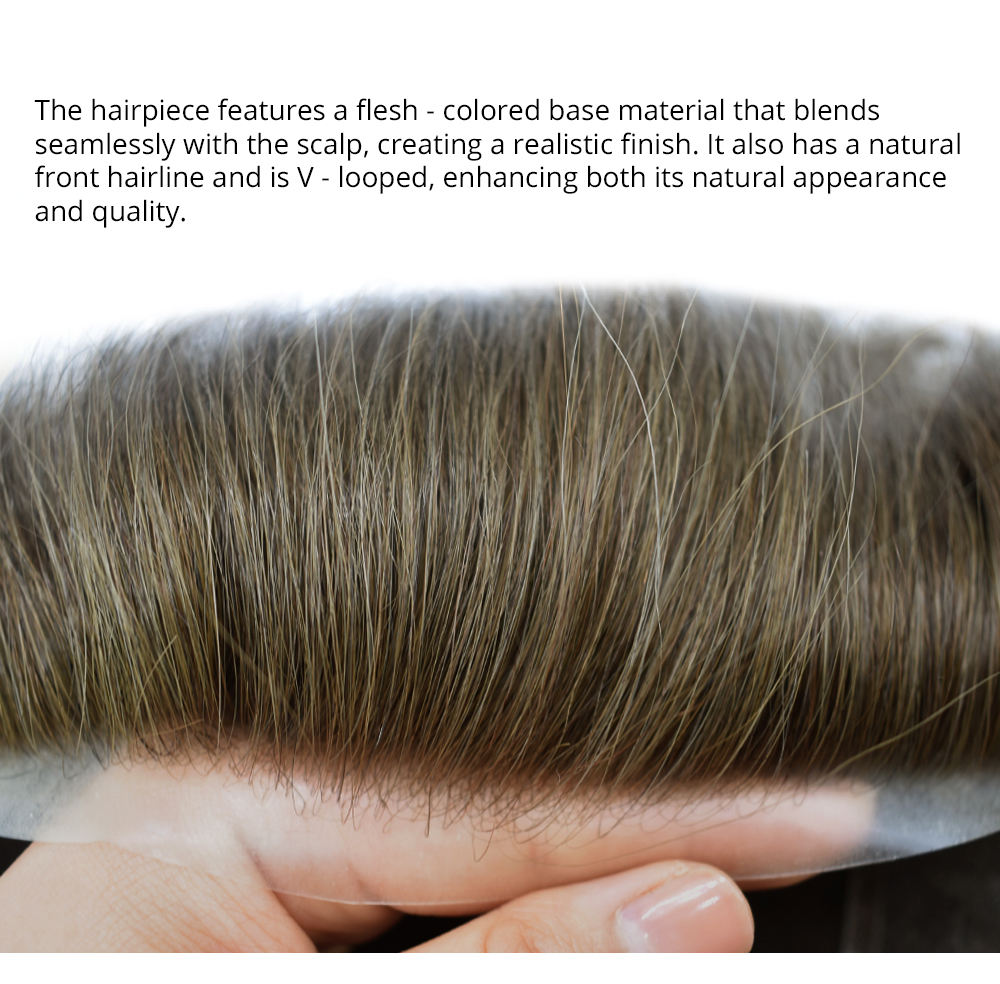 V-Looped Hair At Front,Real Hairline Toupee
