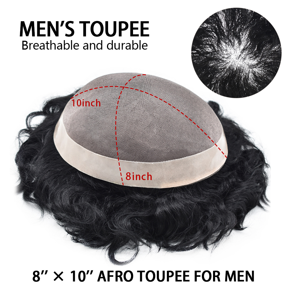 【Goldman Hair】Afro Toupee For Black Men Hair Unit Durable Fine Monofilament Mens Hair System Pu Around Kinky Coily Afro Mens Hairpiece African American Men Afro Toupee