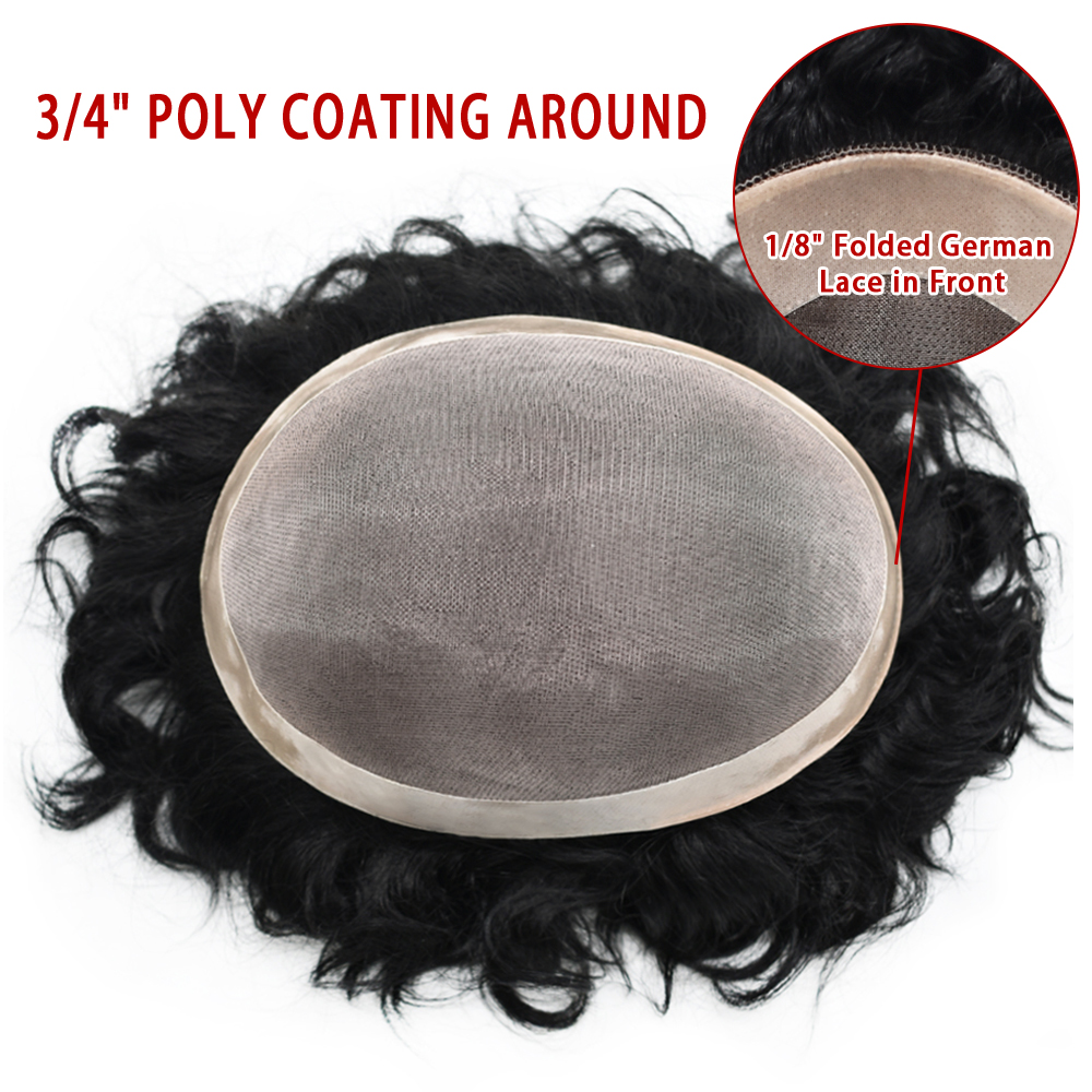 Base Design: soft fine mono center, poly coating around toupee hair piece with Natural Looking