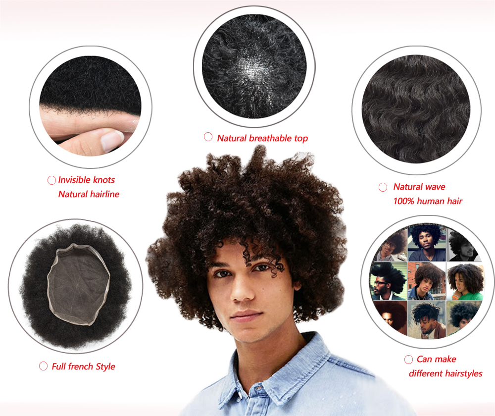 Full Lace Afro Curl Mens Toupee African American Men Human Hair