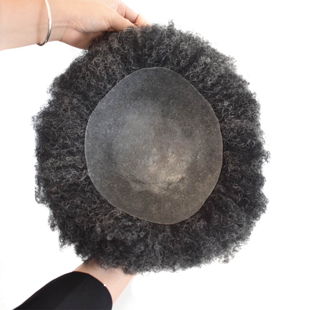 【Goldman Hair】Full Poly Afro Toupee For Black Men Real Human Hair Afro Hair Piece 0.12mm Poly Man Weave Hair Unit Black Men African American Mens Hair Piece For Hair Loss